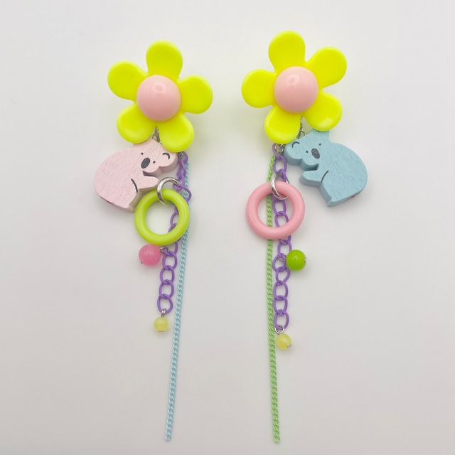 レトロなお花とコアラちゃんのピアス