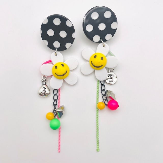 スマイルフラワーのドットイヤリング