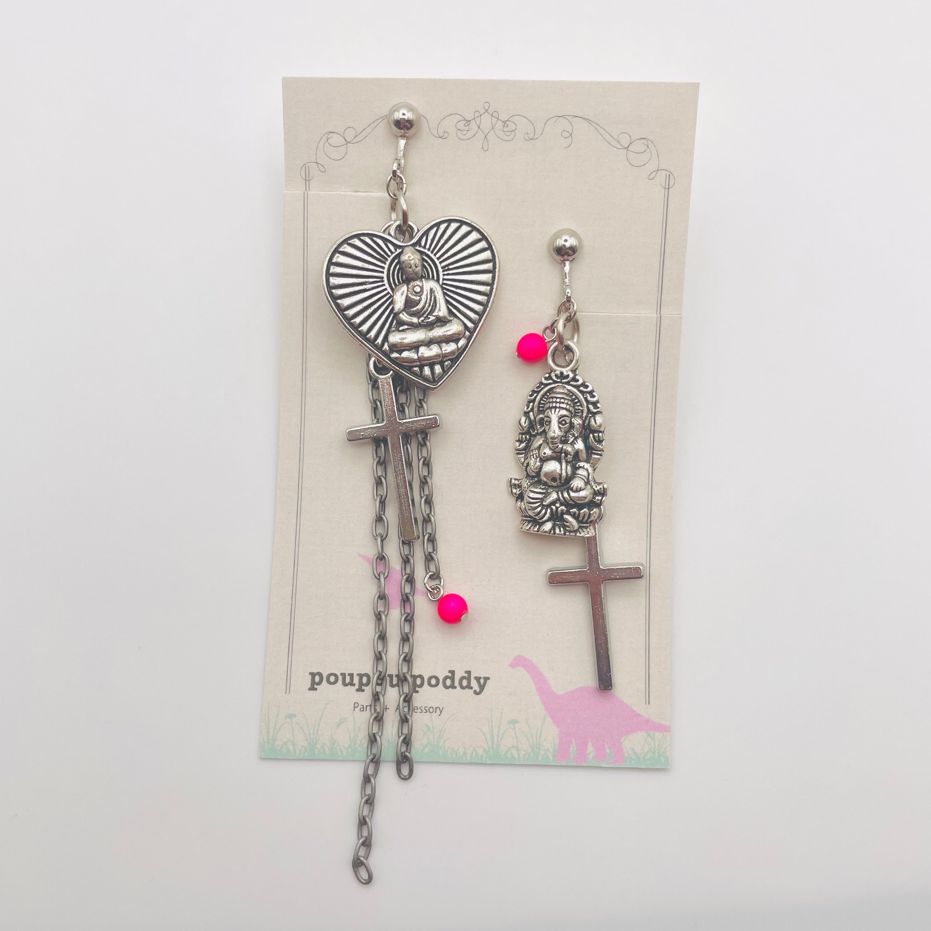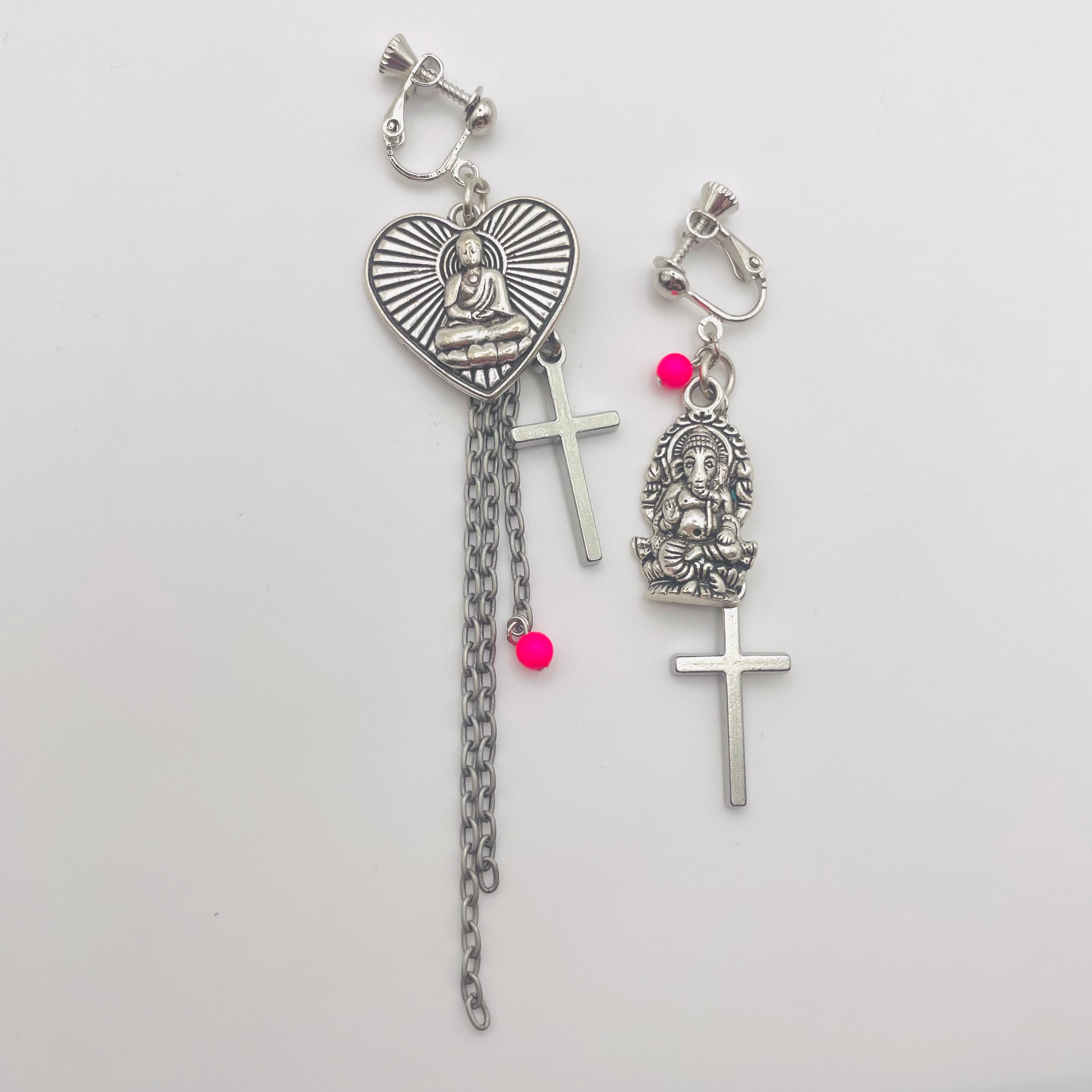 ブッタ様とガネーシャ様にクロスモチーフを合わせたイヤリング