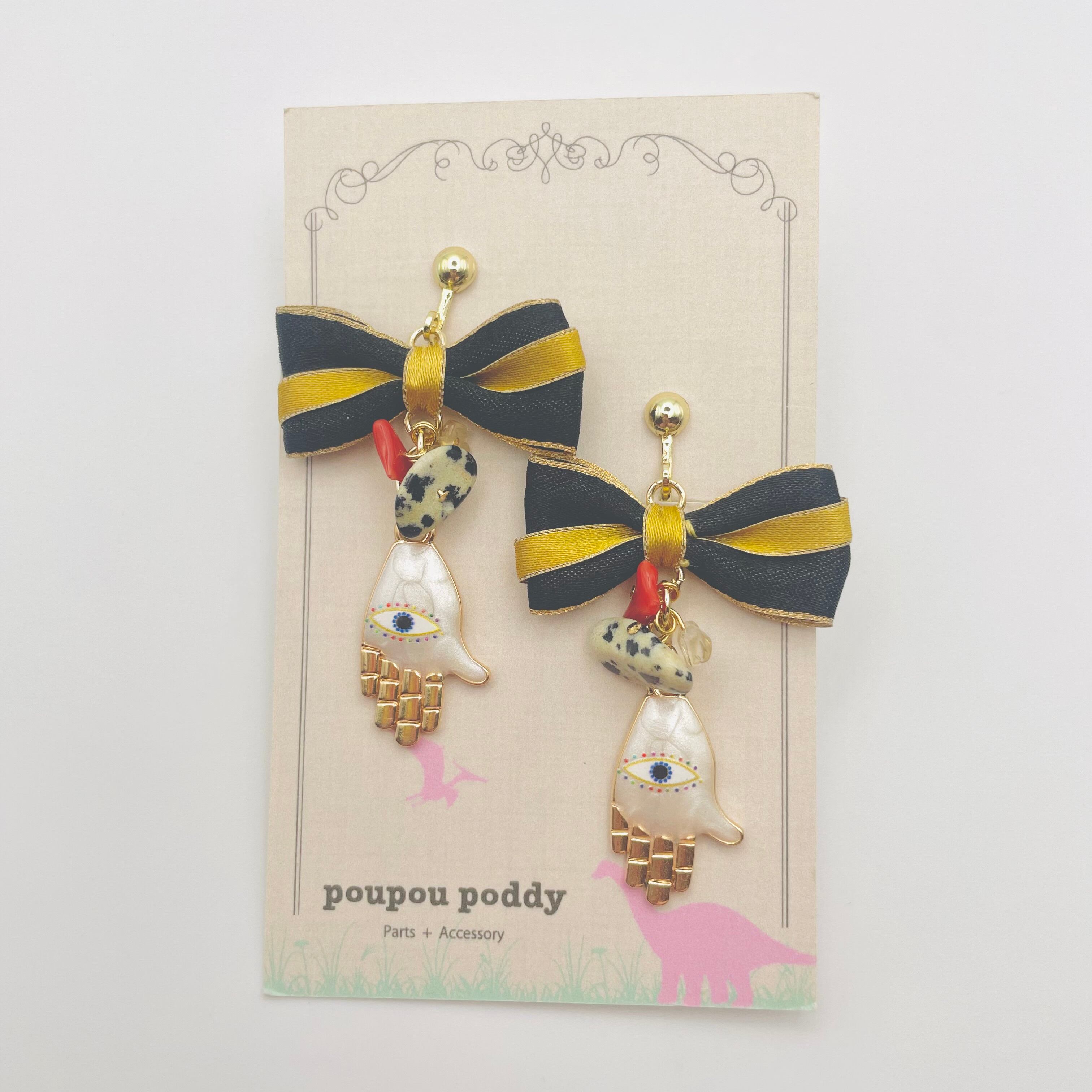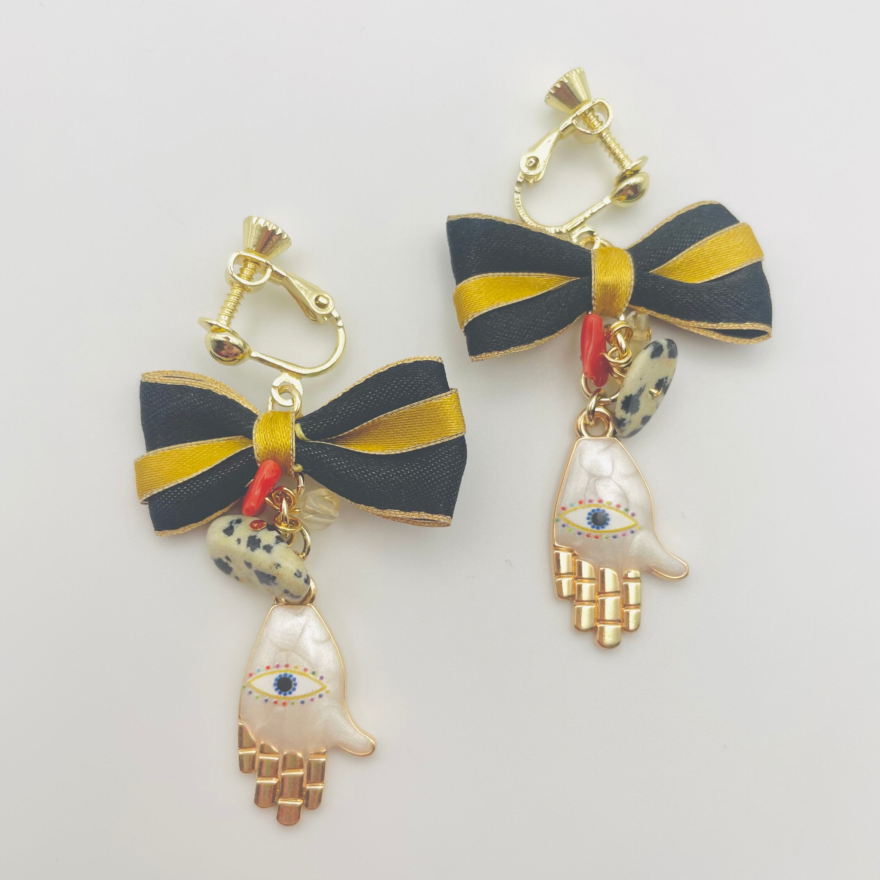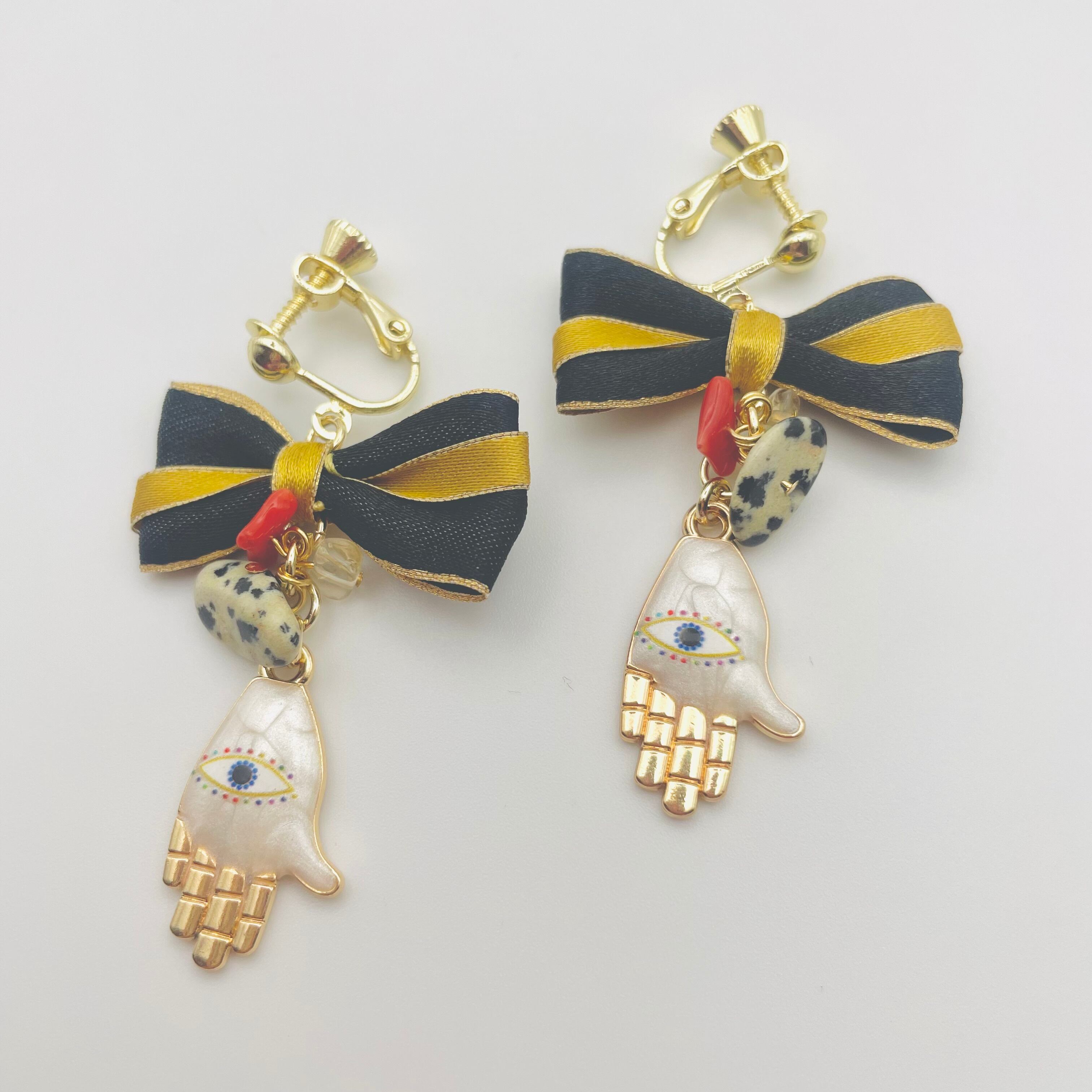 「ハムサの手」とリボンを組み合わせたユニークなデザイン