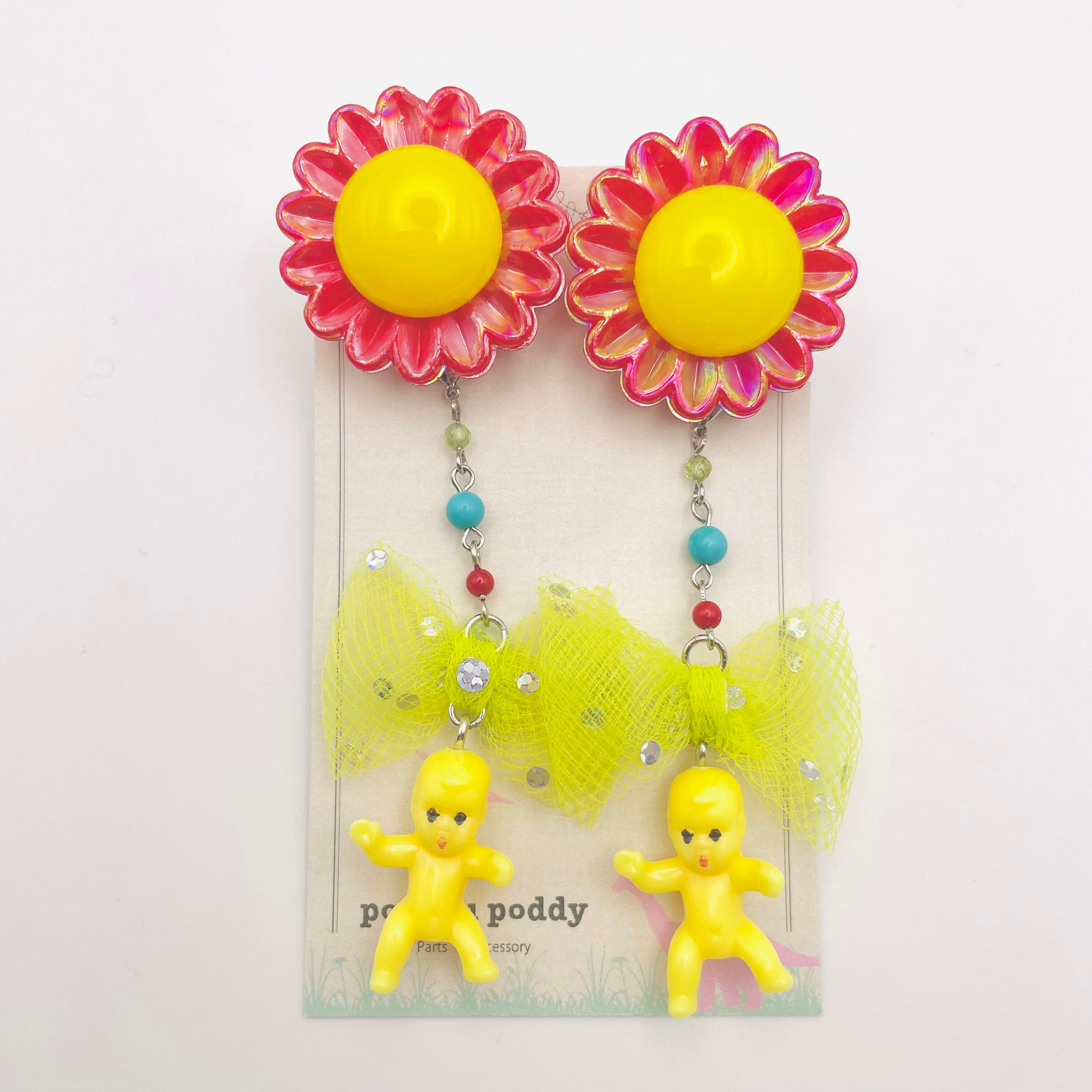 大きいお花と陽気なbabyちゃん2wayイヤリング