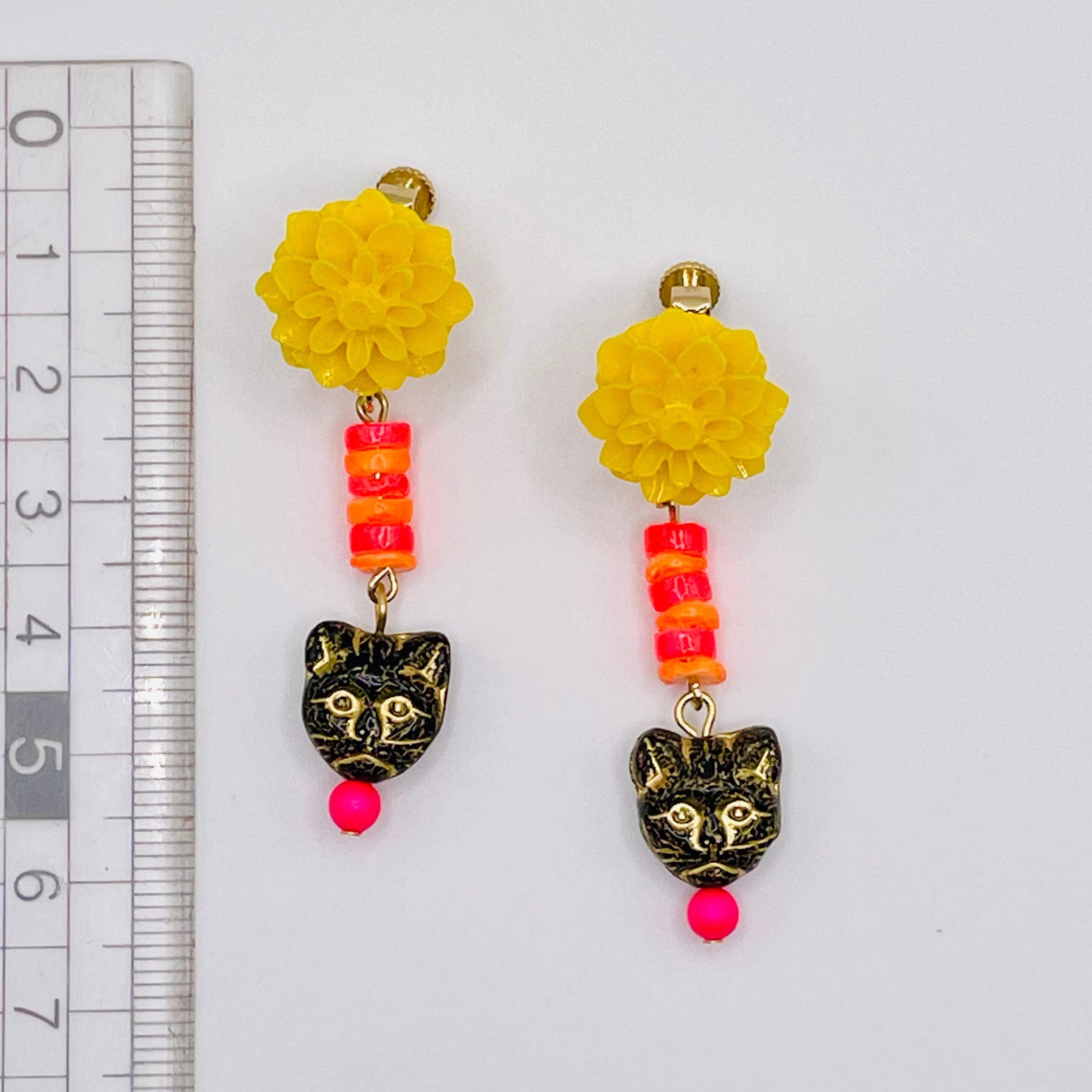 黒猫ちゃんのネオンカラーイヤリング(イエロー)