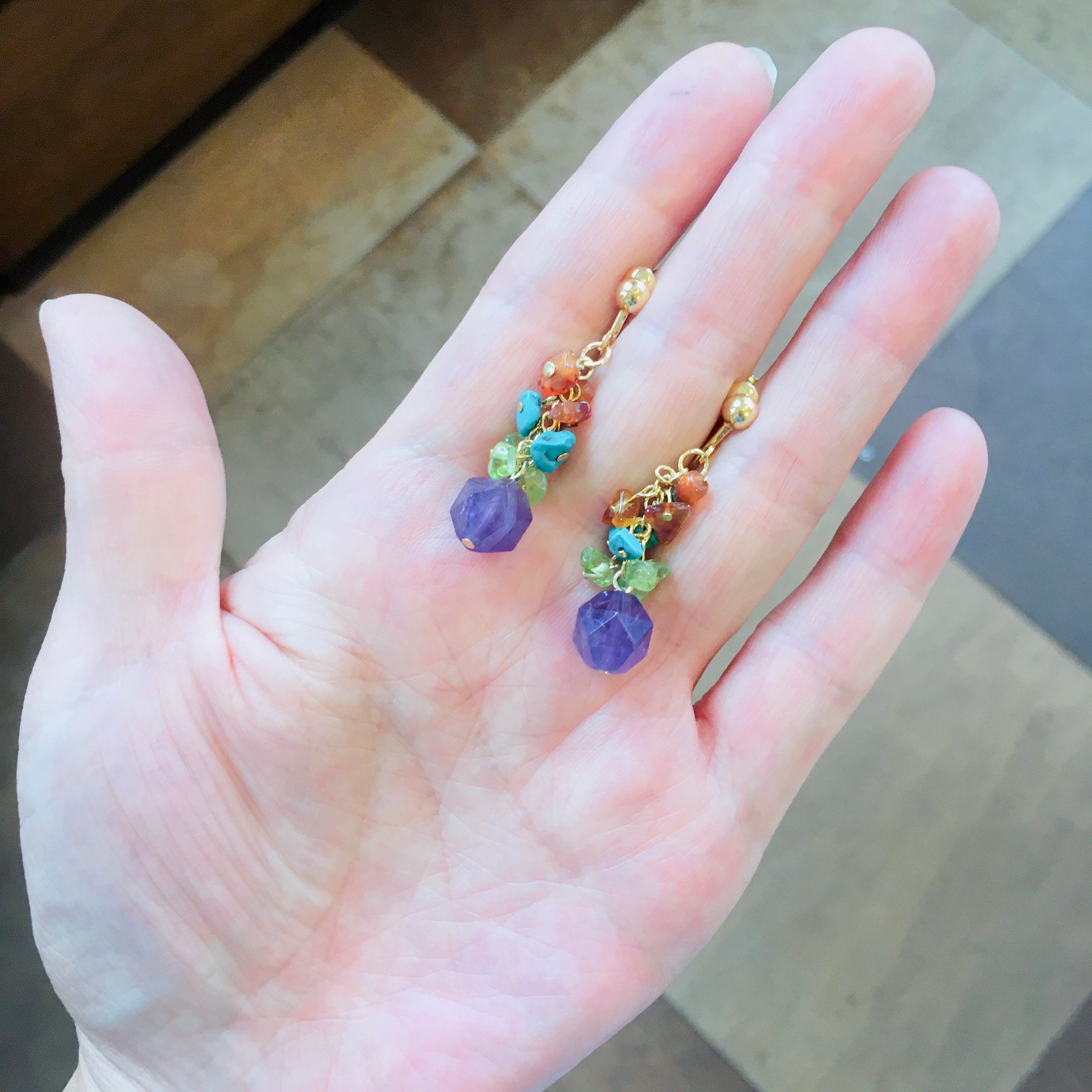 カラフルな天然石のイヤリング