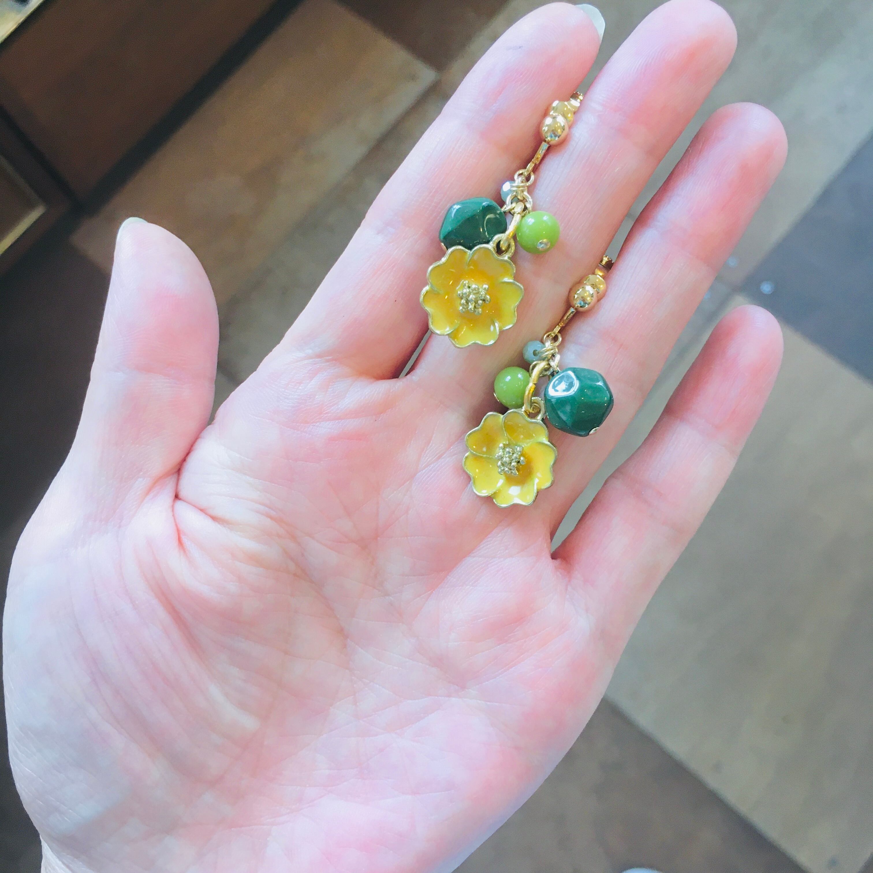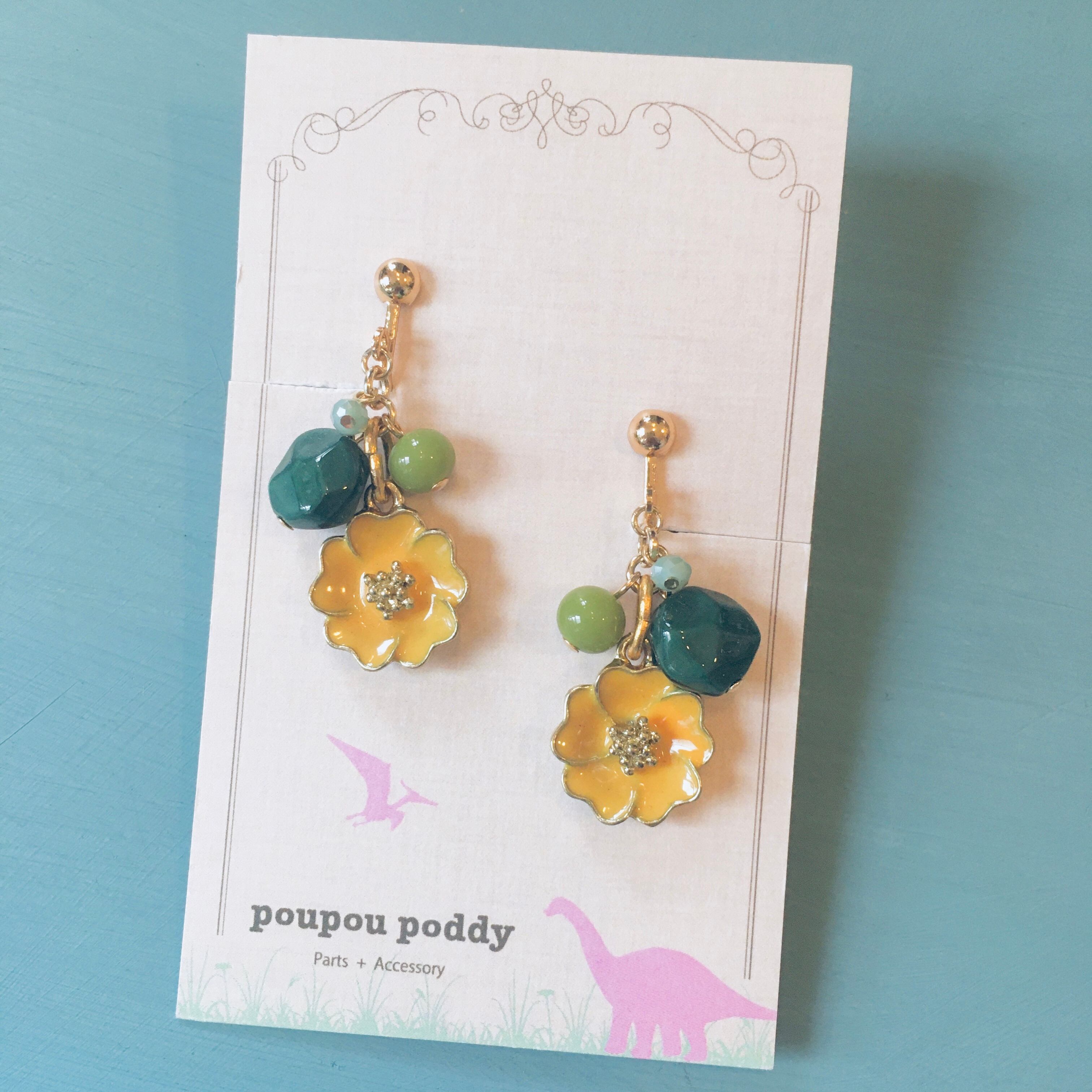 鮮やかなイエローが目を惹くカラーメタルのお花チャームに