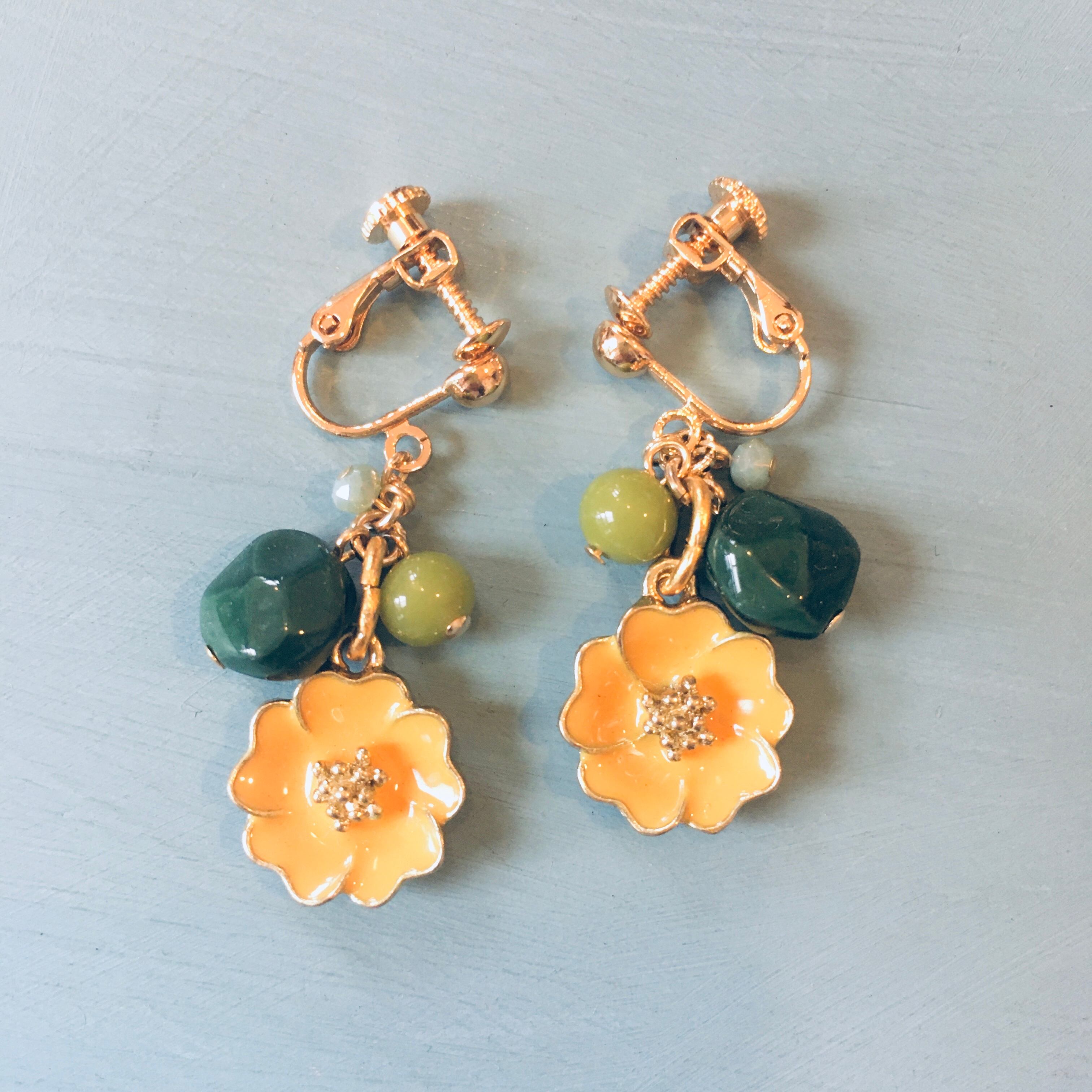 チェコガラスビーズやヴィンテージガラスビーズなどを組み合わせた程よい揺れ感のイヤリングです