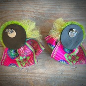 刺繍リボンやチュールレース、ビーズやチャームなどをギュッとコラージュしたピアスです