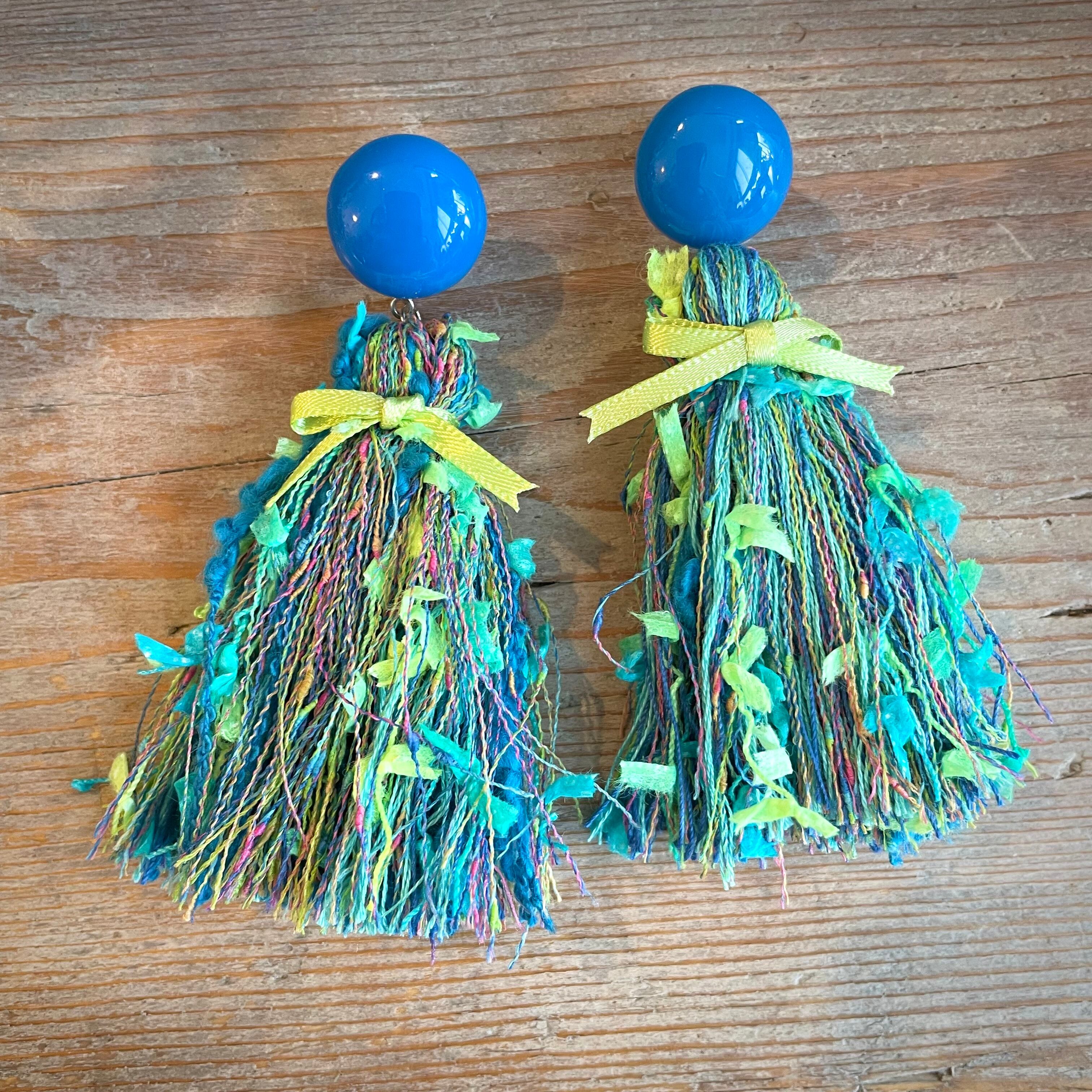 数種類の糸を合わせて作った色鮮やかなタッセルイヤリングです