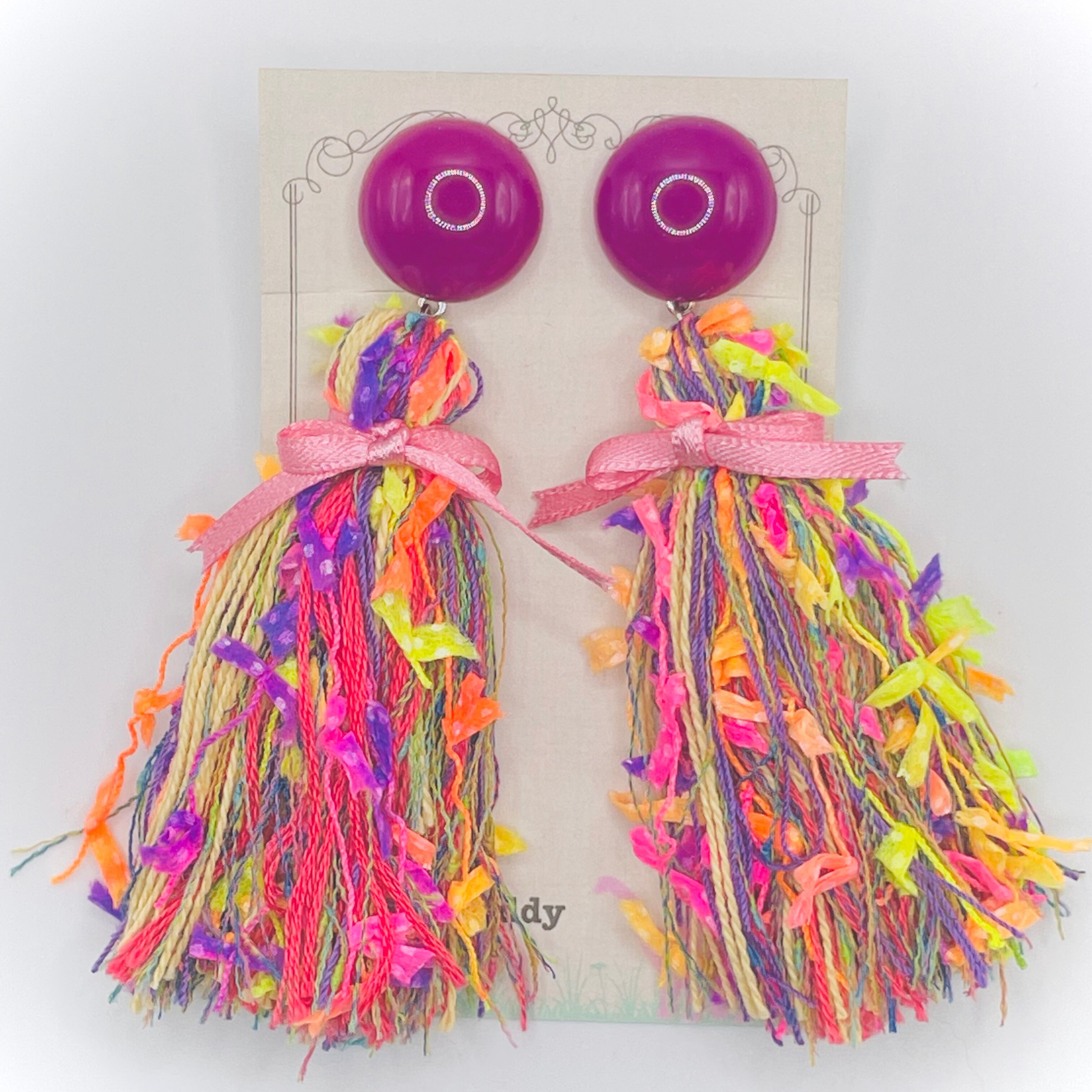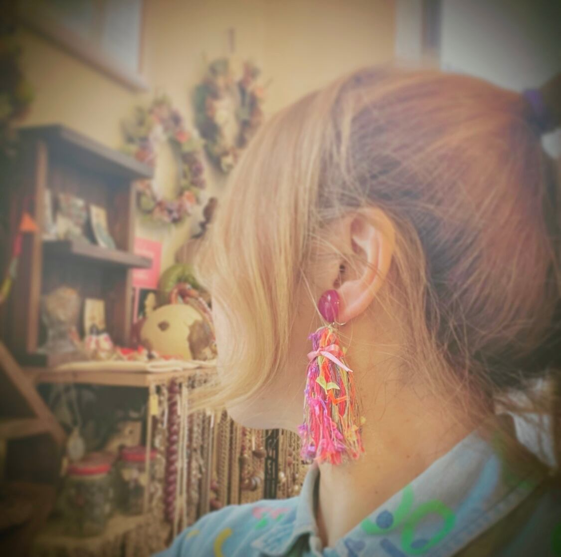 数種類の糸を合わせて作った色鮮やかなタッセルイヤリングです