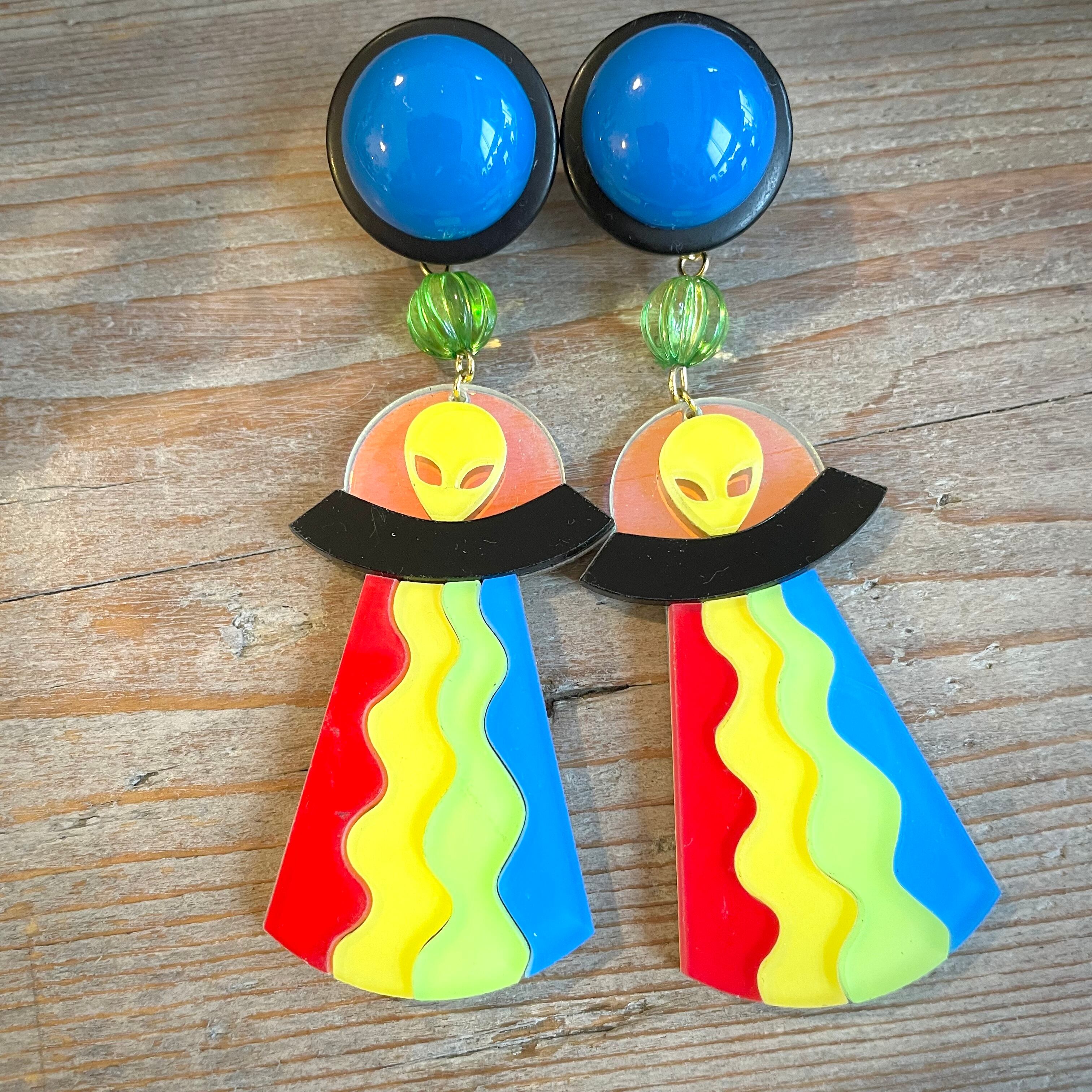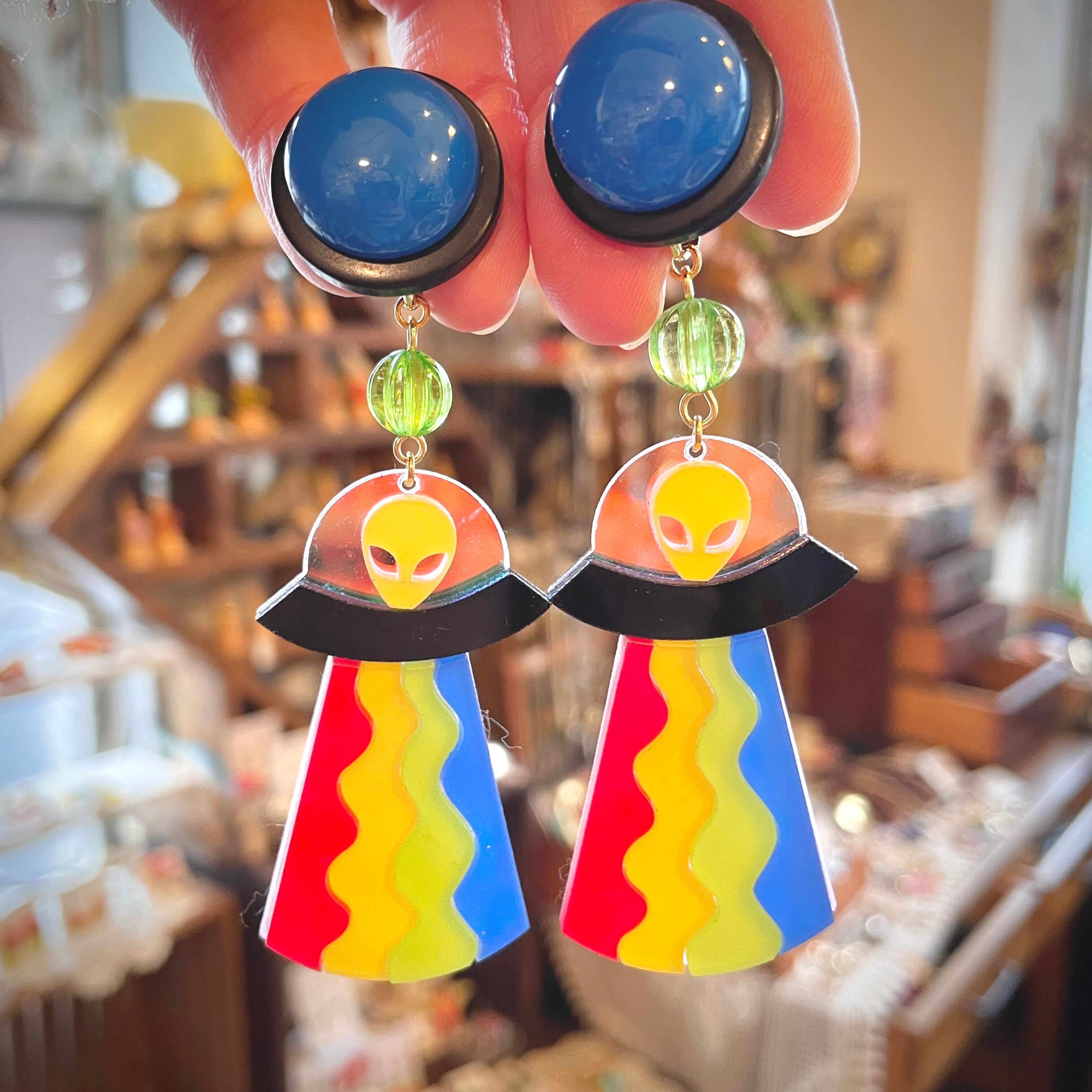 派手派手ビームを出しているUFOのチャームが可愛いイヤリング