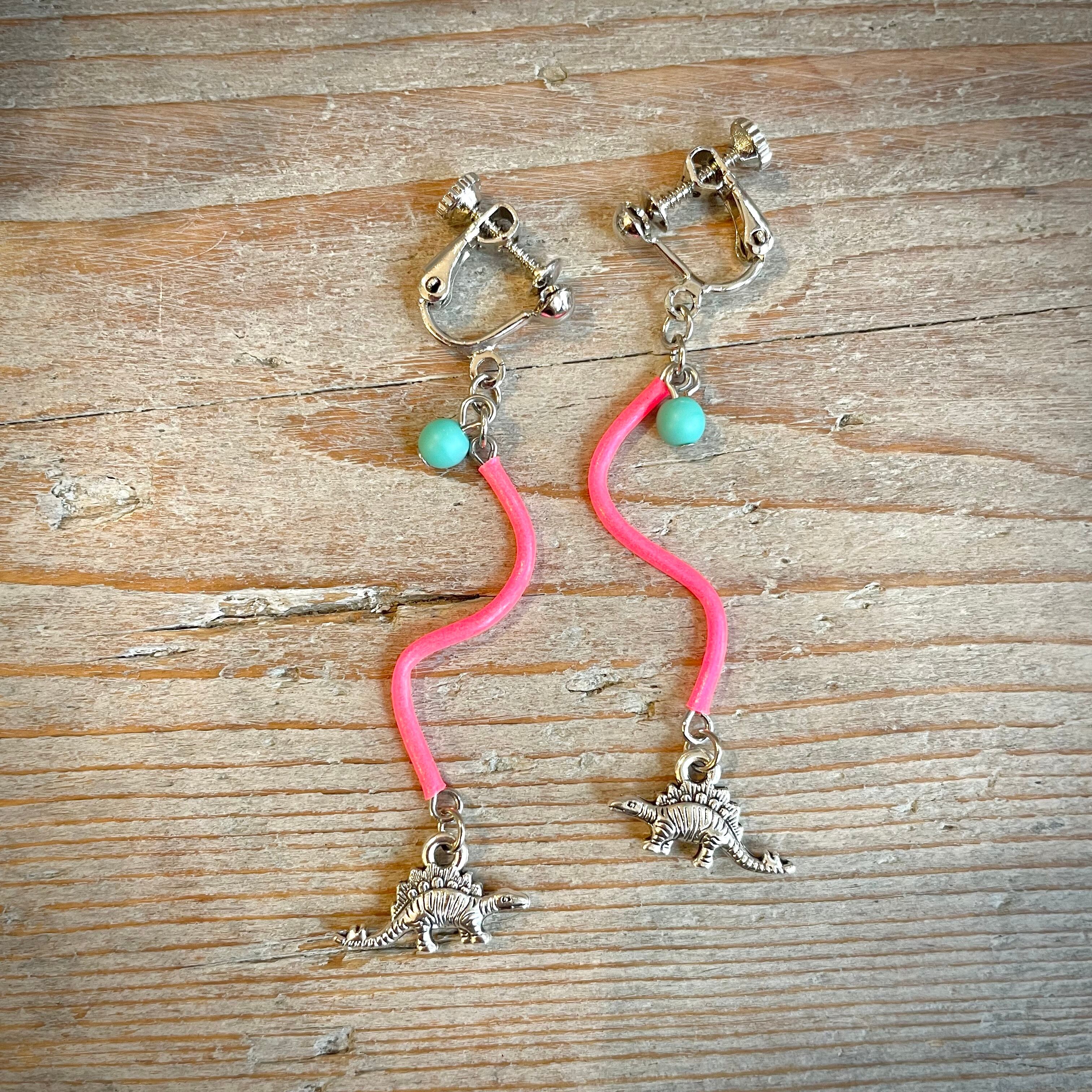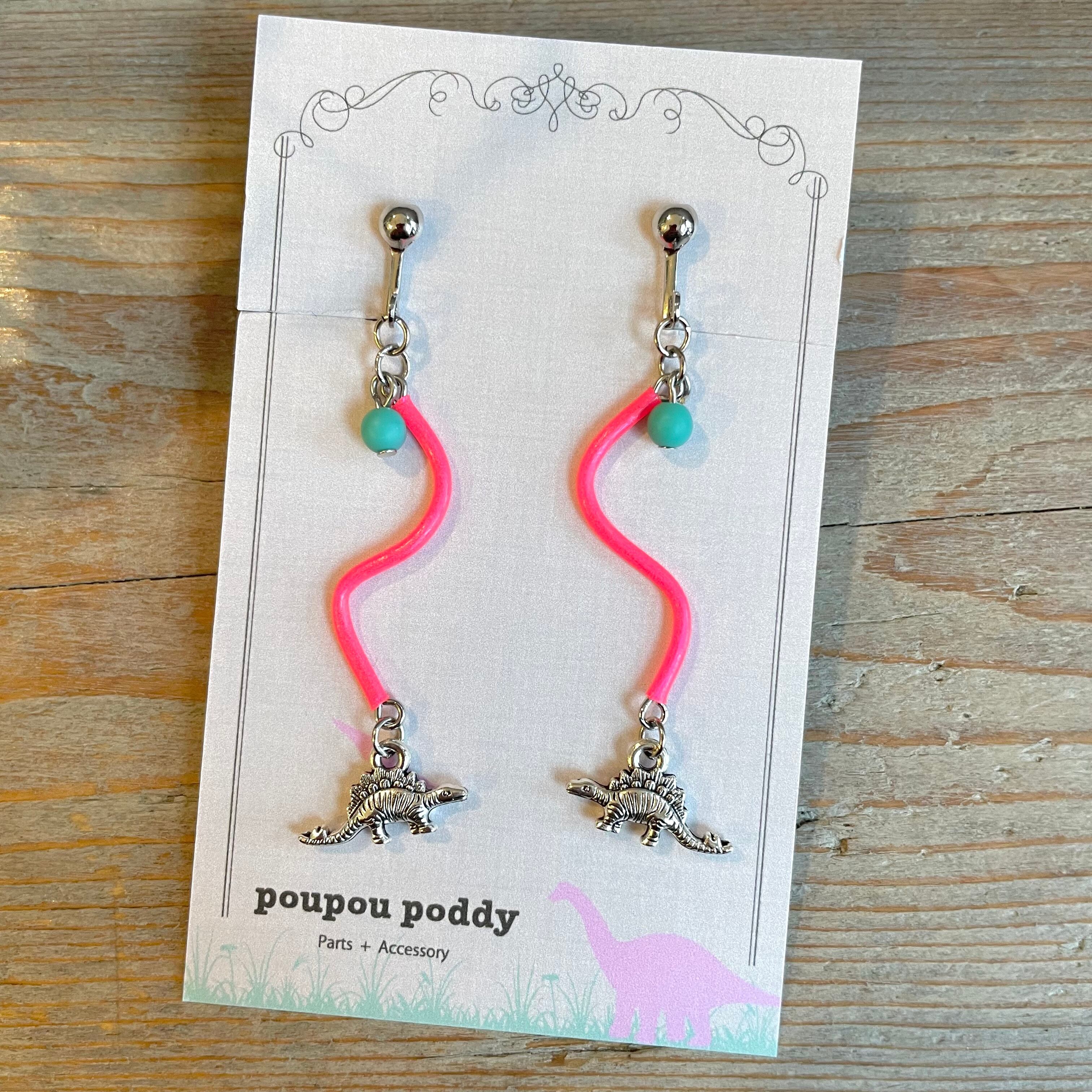 ちびっこ恐竜さんのネオンラインイヤリング(ピンク)