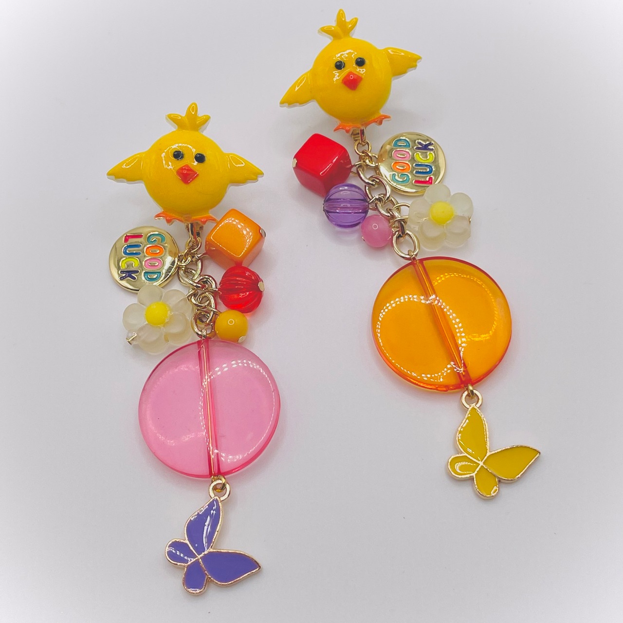 ひよこさんにお花や蝶々、「good luck」のチャームなどなど