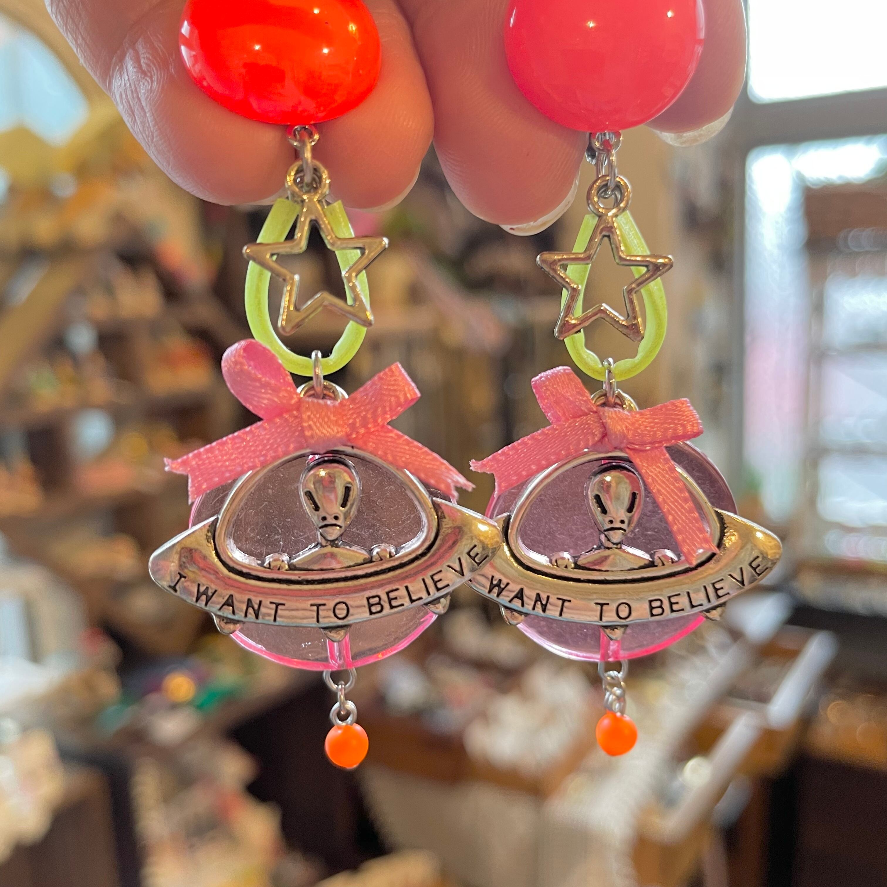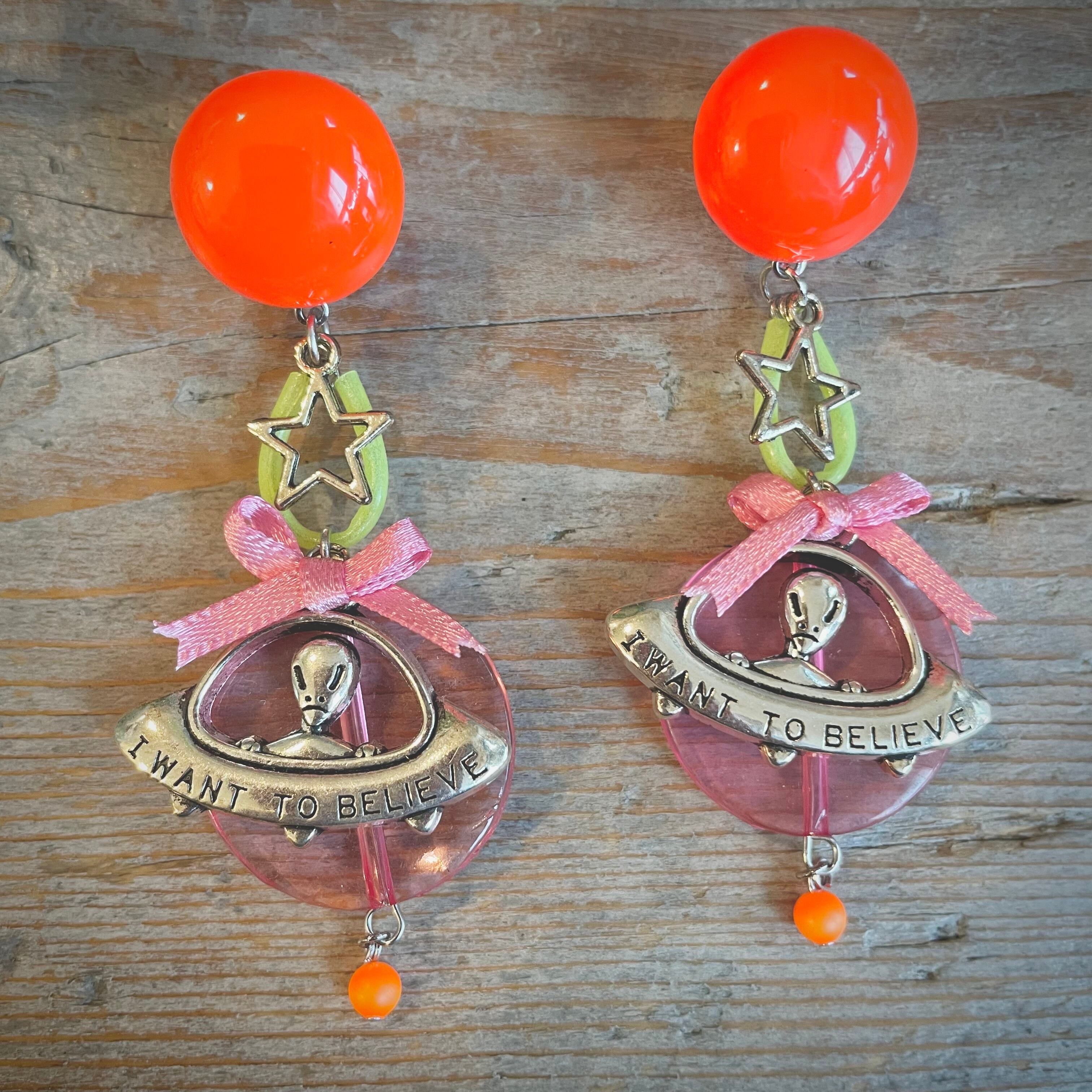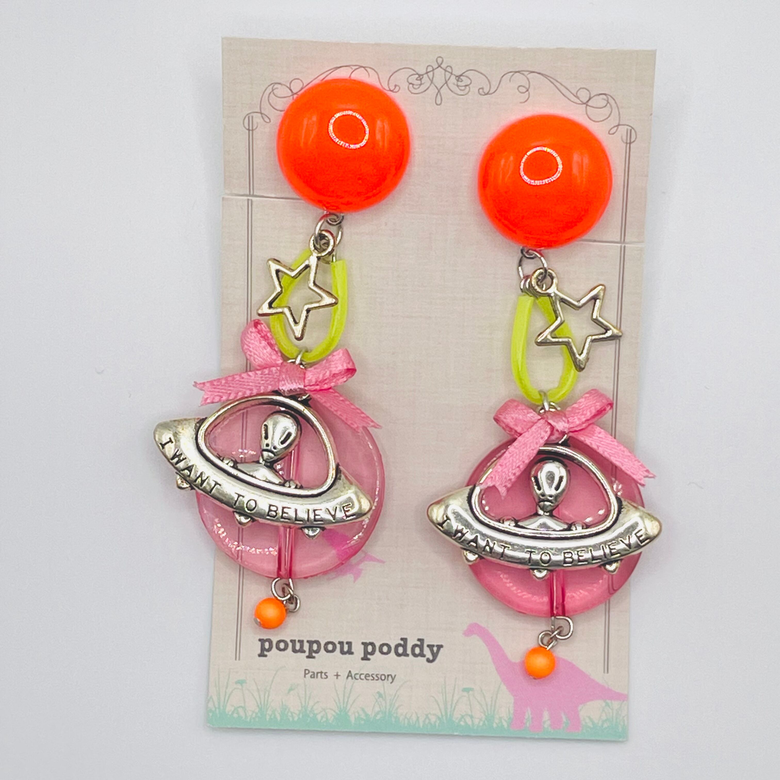 エイリアンちゃんのUFOゆらりんイヤリング(ピンク)