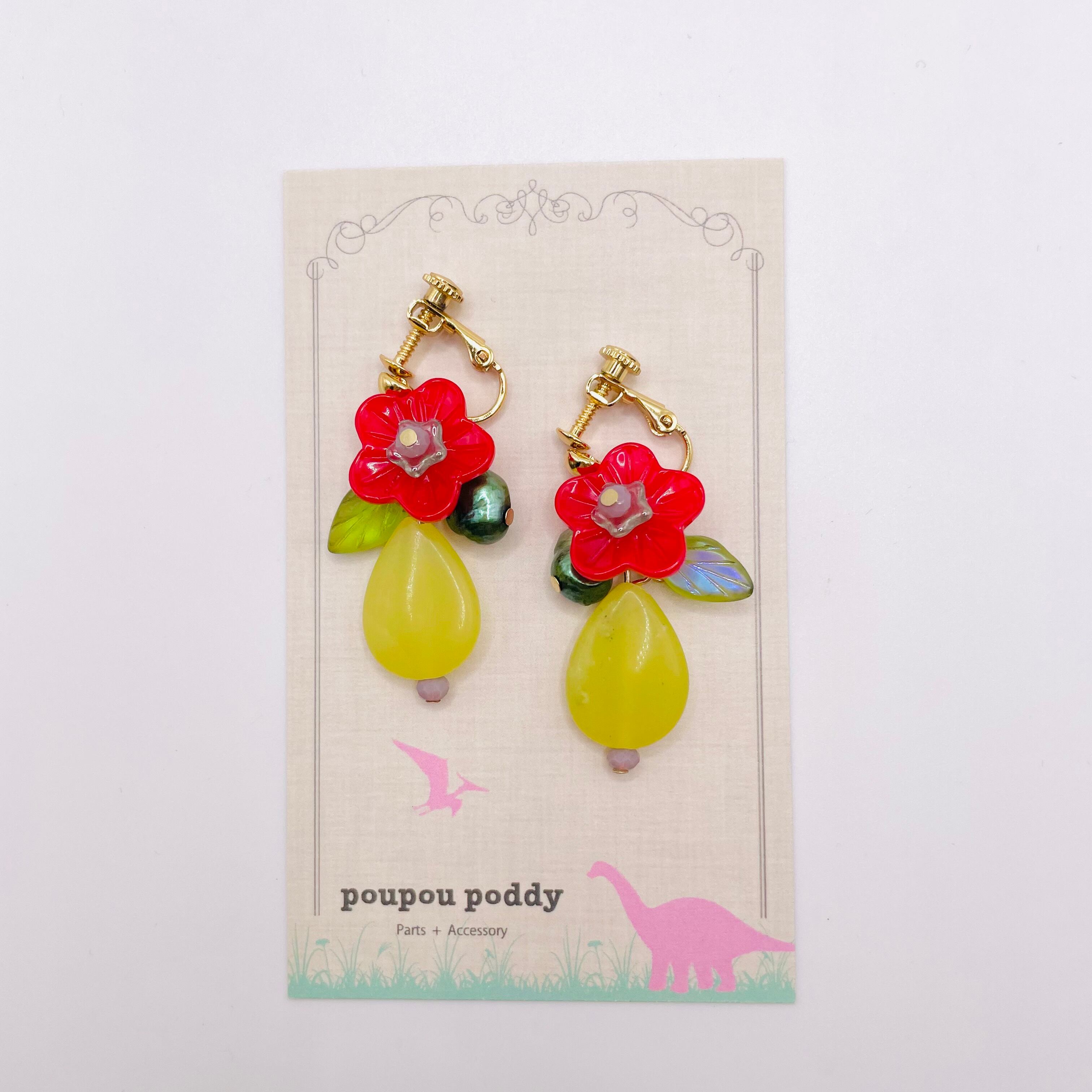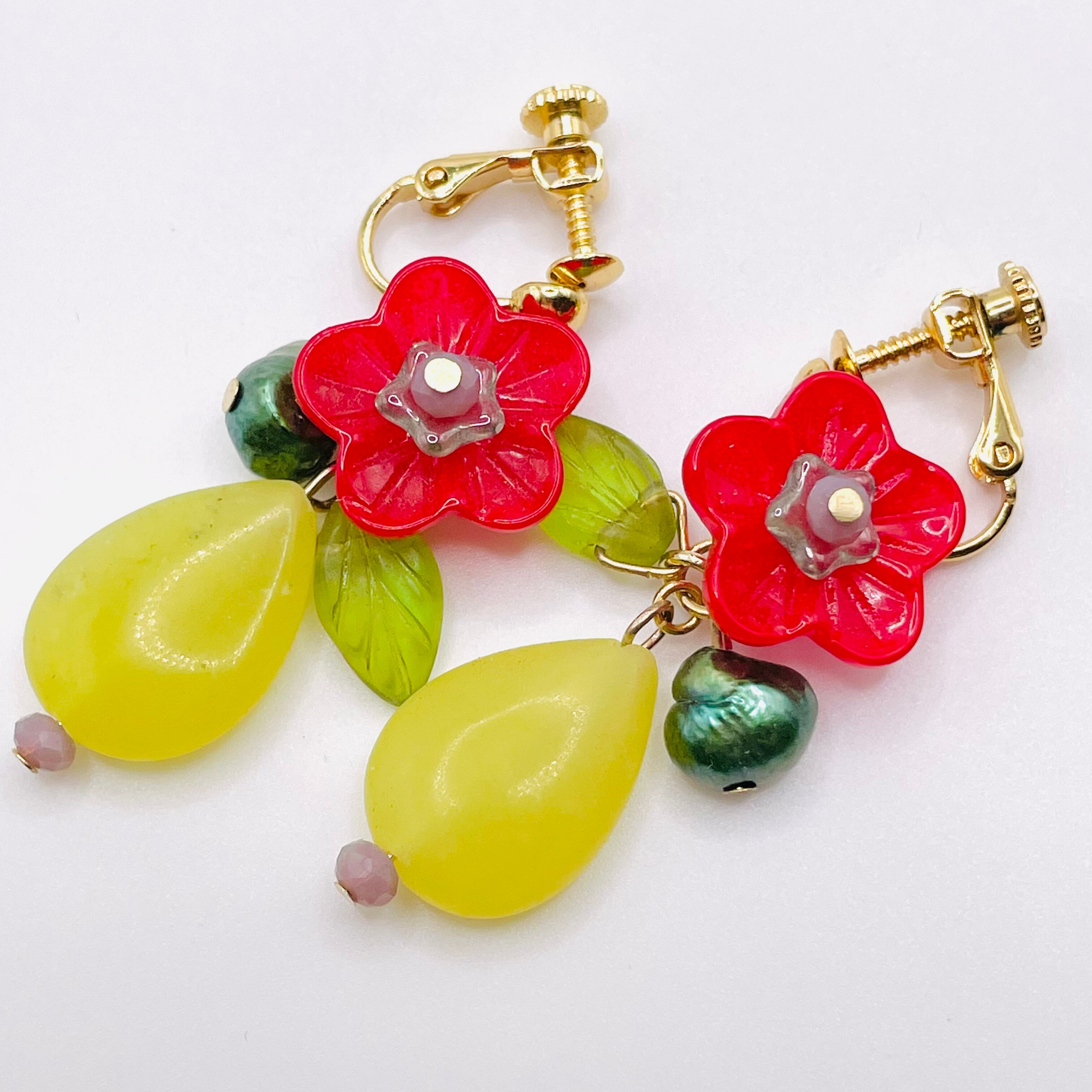 レッド×イエロー×グリーンの組み合わせが鮮やかで、耳元をパッと明るくしてくれます