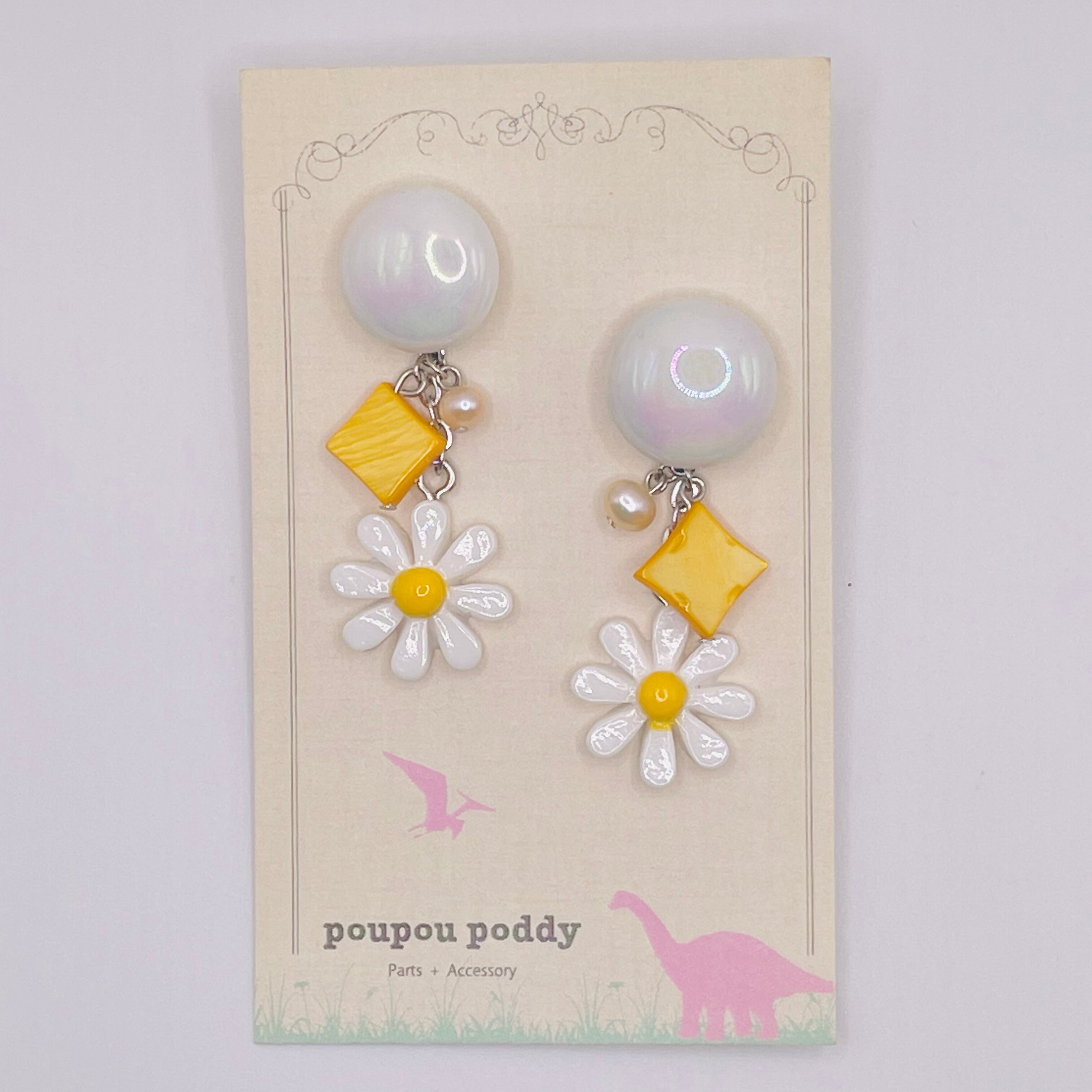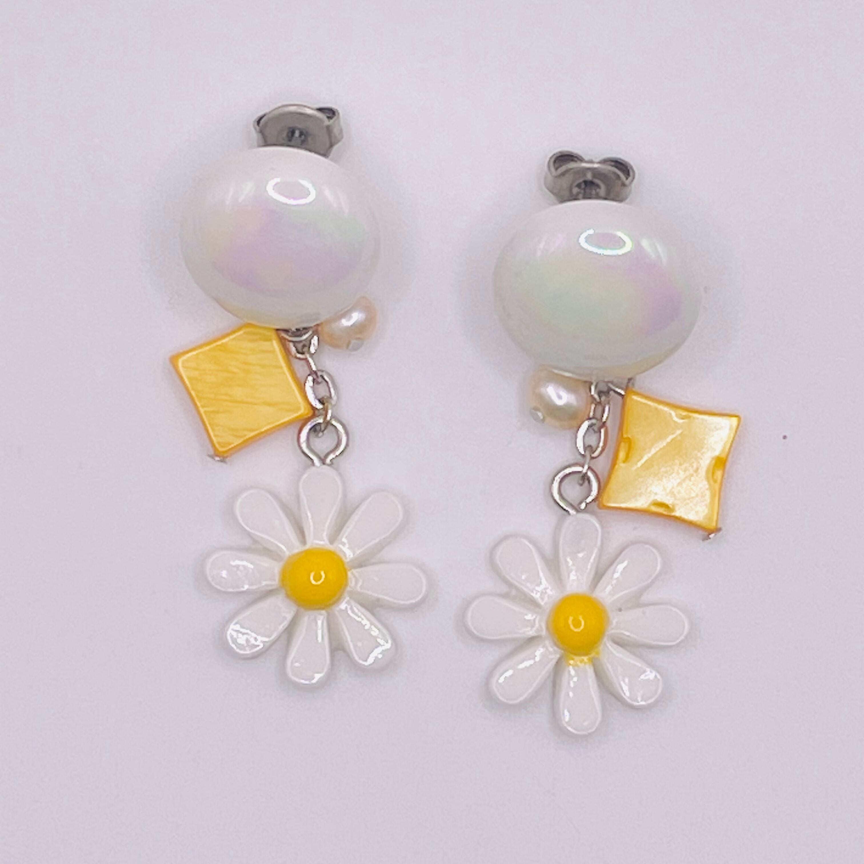 耳たぶ部分のホワイトカボションはジャパンヴィンテージのガラス素材で
